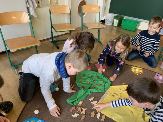 Die Kinder der ersten Klassen hörten die aufregende Jesusgeschichte von Zachäus. Dabei durften sie aktiv die Geschichte mitgestalten.