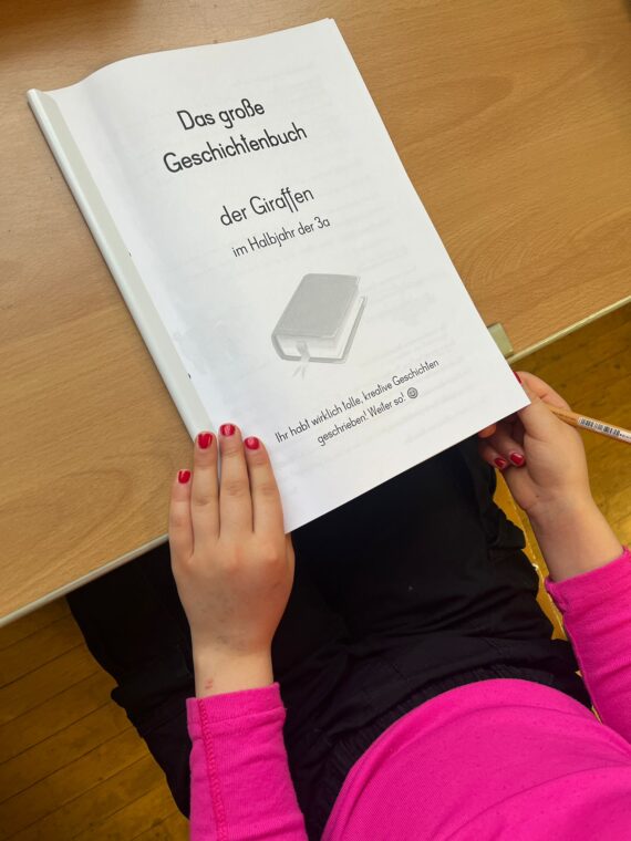 Die Giraffen haben bisher schon viele tolle, feie Geschichten verfasst. Zum Halbjahr bekamen sie ihr fertiges Geschichtenbuch überreicht. Tolle Arbeit, liebe Giraffen!