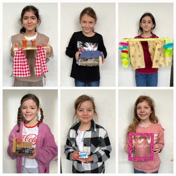 Die Giraffen planten und gestalteten im technischen Werken ihre eigenen freien Abschlussprojekte. Ganz nach ihren Vorstellungen und Ideen wurde mit Altholz und Alltagsmaterial gearbeitet. Dabei entstanden Puppenhäuser, ein Vogelhaus, eine ganze Waldlandschaft, Bilderrahmen und vieles mehr!