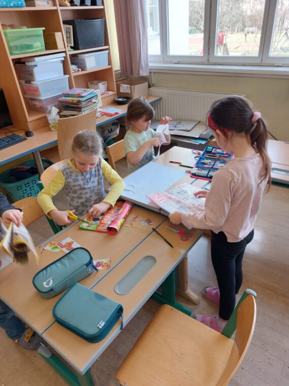 Unsere Zähne: In Gruppen gestalten die Kinder der Igelklasse im Sachunterricht Plakate – Was ist gut für unsere Zähne, was weniger?