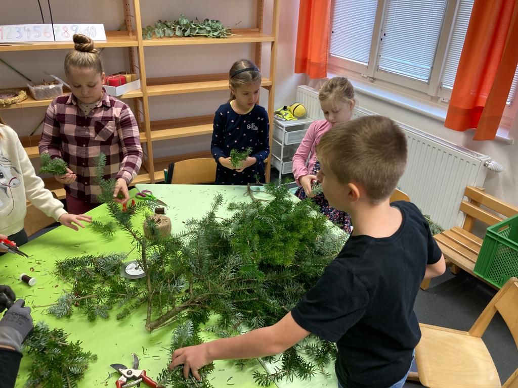 Die Elefanten- und Koalaklasse durften heuer den Adventkranz für die Klasse gemeinsam mit Caro Führer binden!
