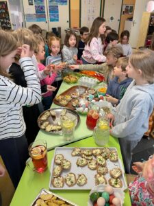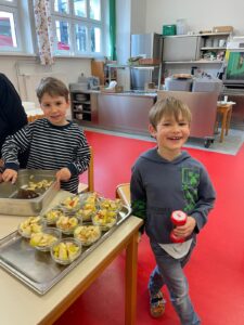 Die Koalas haben dieses Mal die gesunde Jause ganz alleine organisiert: Gemeinsam wurde eine Einkaufsliste erstellt, alle Lebensmittel eingekauft, Eier gefärbt und alles vorbereitet. Neben einem riesigen Lerneffekt hatten die Kinder ganz viel Spaß an der Sache!