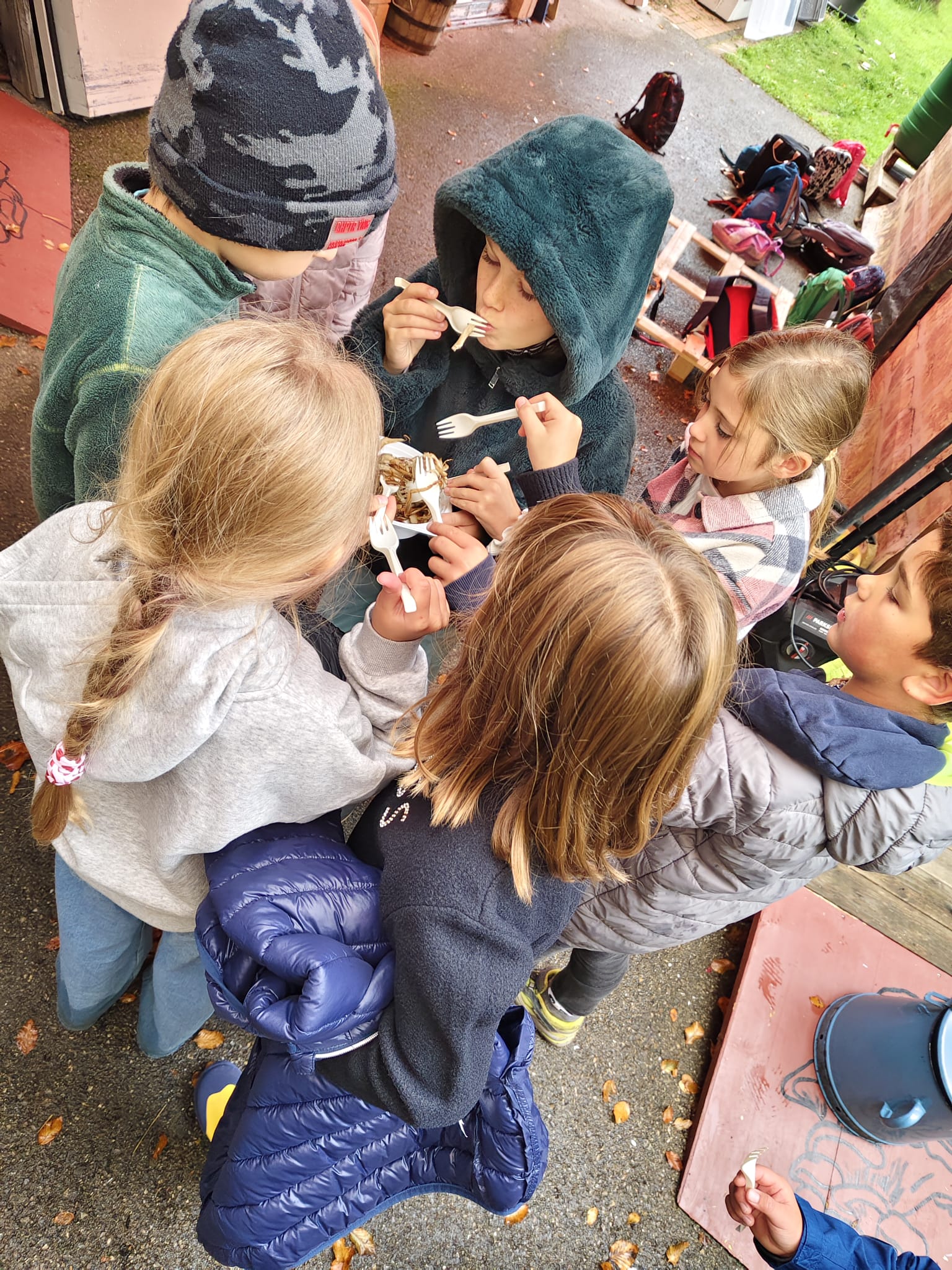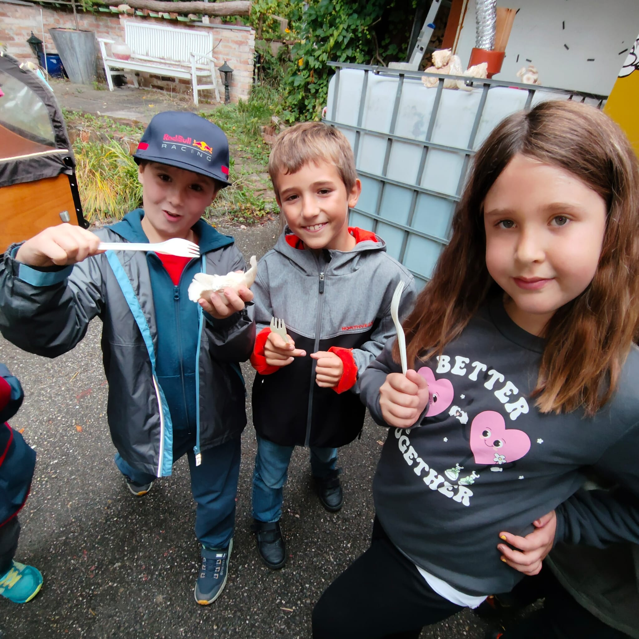 Die Kinder durften die Pilzzucht bei Klaus und Tina Schnötzinger-Vorwahlner besuchen. Dabei haben sie vieles über die Pilzsorten (Austern Seitlinge, Shiitake, Igelstachelbart) erfahren und sie sogar verkosten.