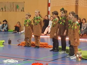 Die Seepferdchen und die Koalas haben in den vergangenen Wochen viel Zeit und Energie in das Musical gesteckt. Alle durften die Rolle ihrer Wahl ausführen und konnten ihr Talent beim Singen, Moderieren, Tanzen, Schauspielern oder in der Organisation zum Einsatz bringen. Voller Stolz und Freude konnten sie es dem Altersheim, dem Kindergarten, den anderen Klassen sowie mit einer Abendvorstellung der Familie vorführen.