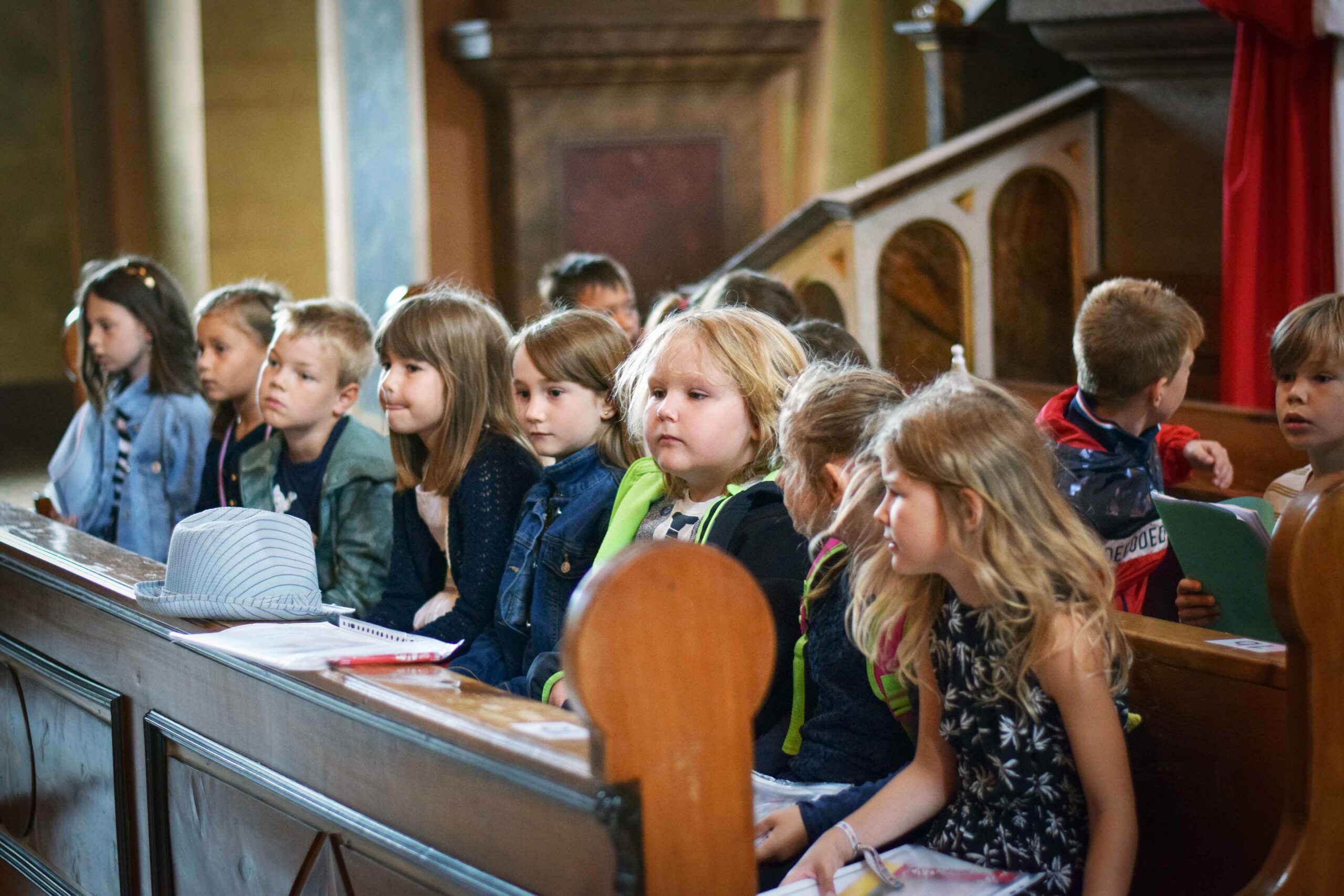 Die Kinder der ersten Klassen hörten die aufregende Jesusgeschichte von Zachäus. Dabei durften sie aktiv die Geschichte mitgestalten.