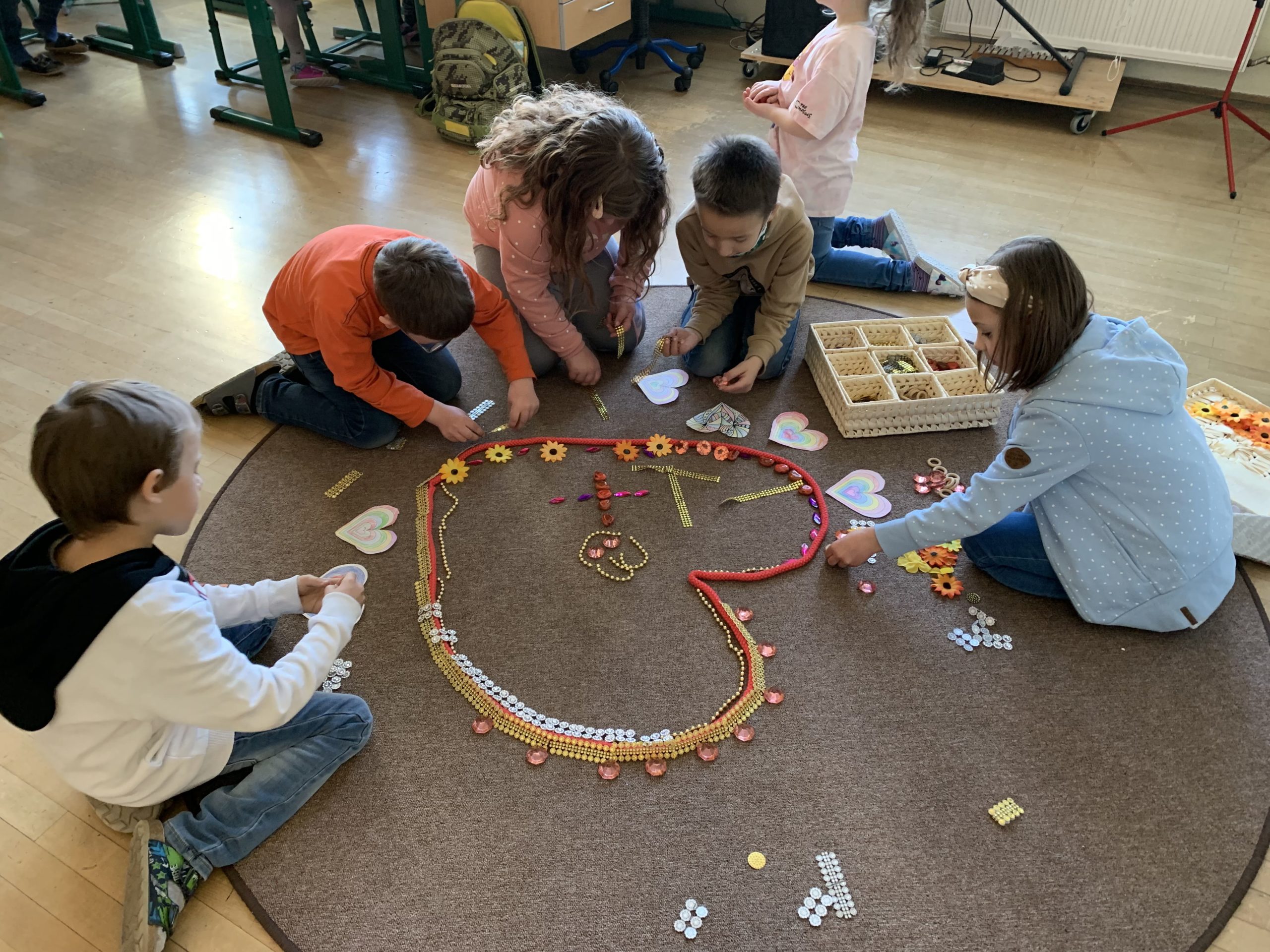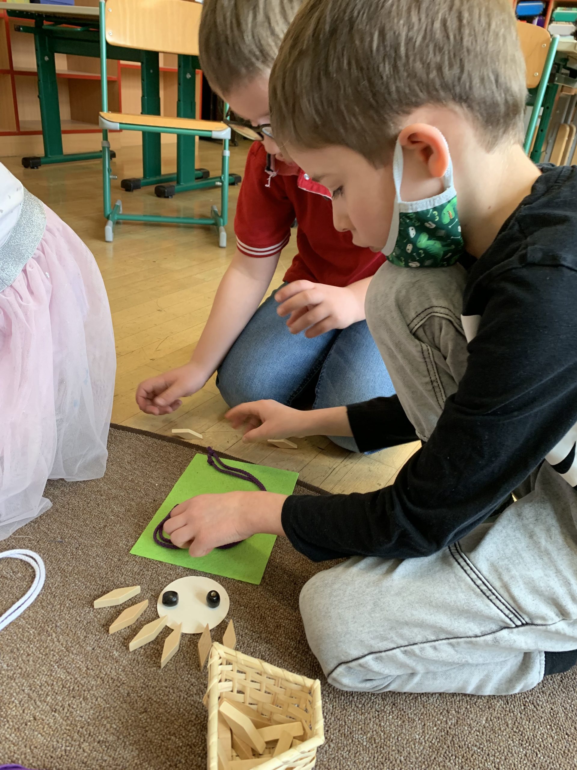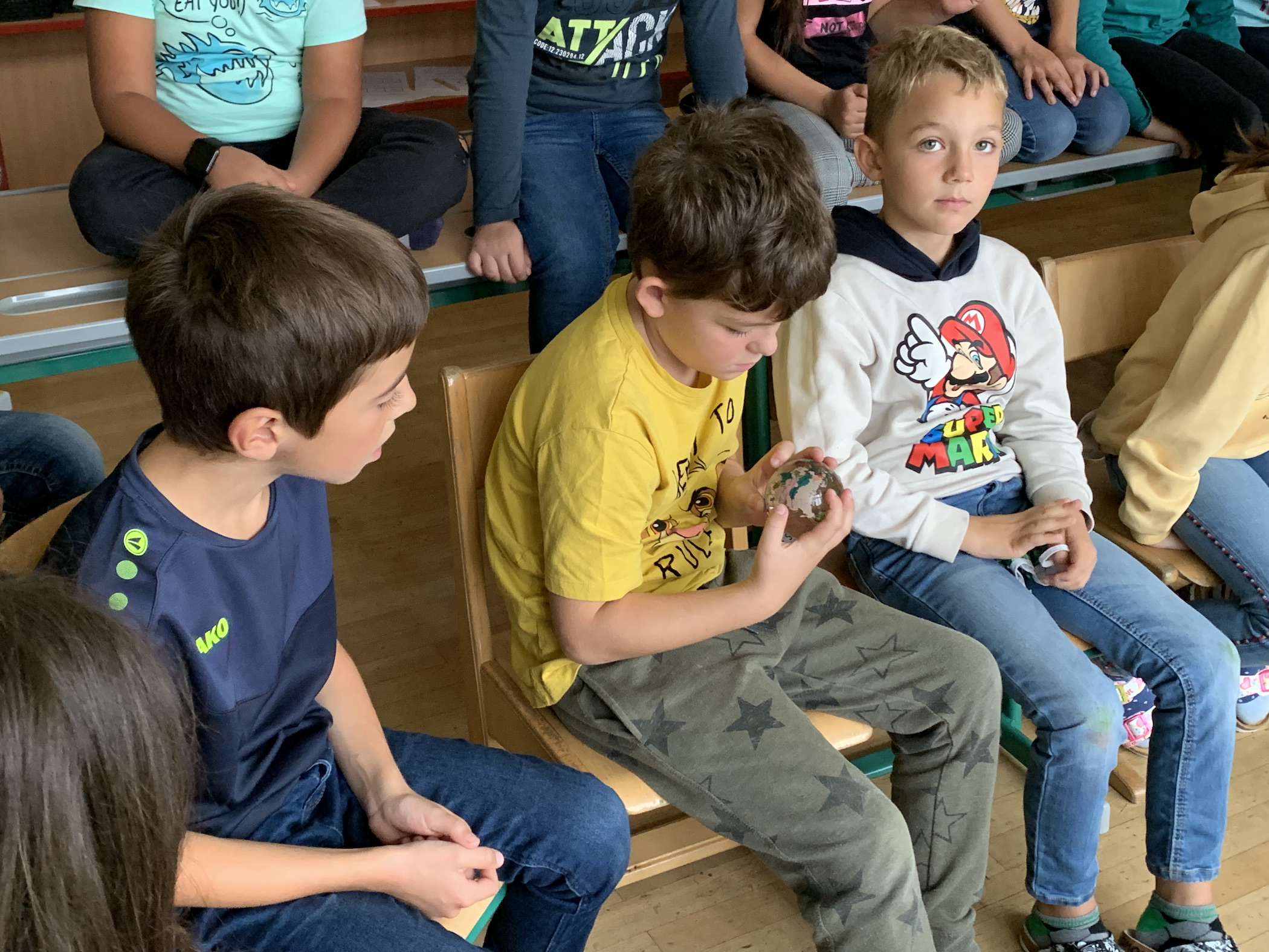 Die Dino- und Giraffenklasse hatten einen Workshop mit Frau Thurnhofer: Anhand der Bilderbuchgeschichte “Mats und die Wundersteine” von Marcus Pfister wurde den Kindern ein bewusster Umgang mit den Schätzen der Natur (be)greifbar gemacht.