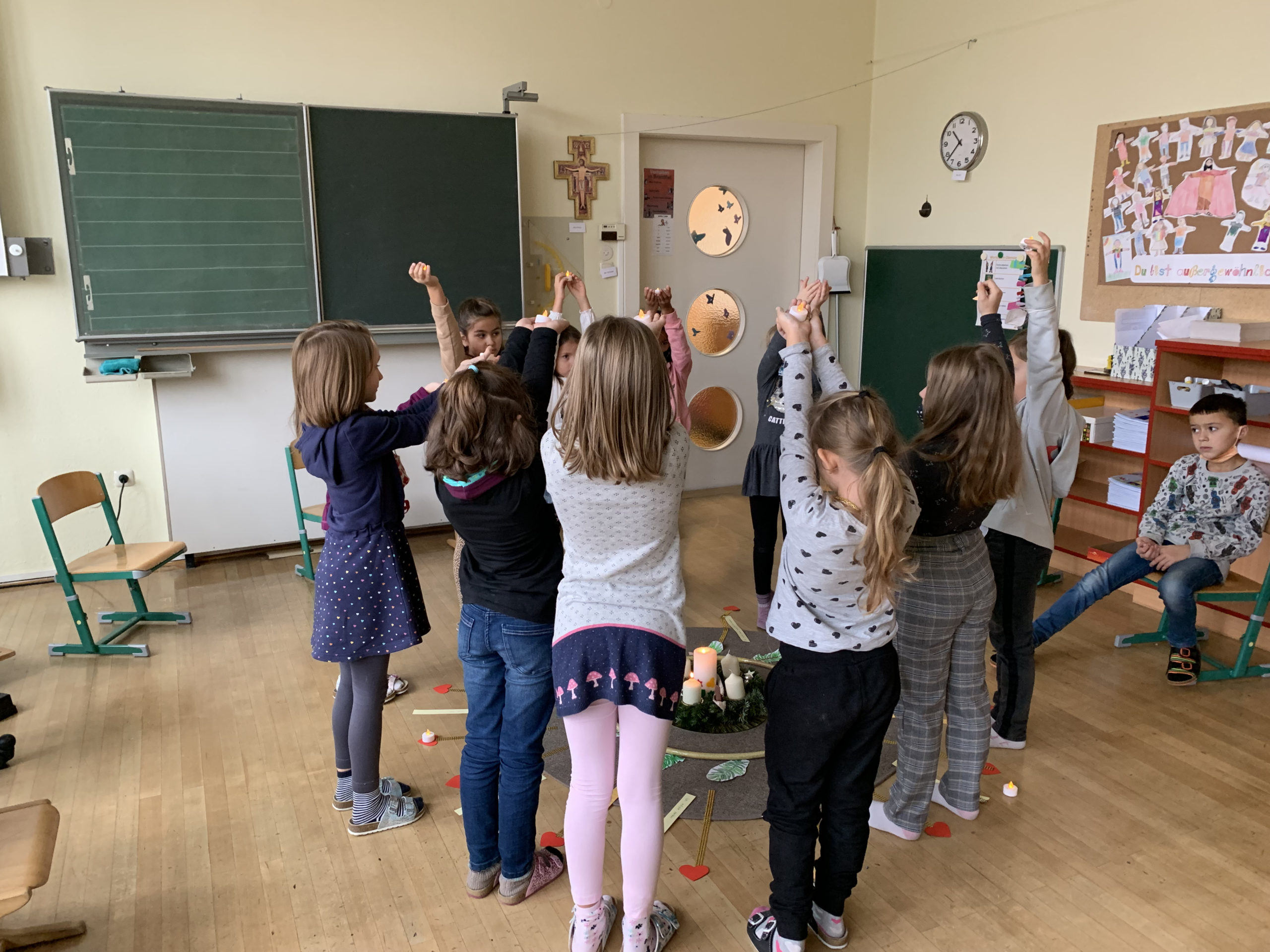 Am Freitag fand unsere gemeinsame Adventkranzweihe in der Aula statt. Gemeinsam mit Herrn Bretbacher und den Schwestern vom Haus wurde die Weihe sehr stimmungsvoll gefeiert. Die Kinder sangen begeistert Adventlieder und hörten die Geschichte “das rote Paket”. Dazu gibt es in unserer Schule eine Aktion: Jede Klasse wird in der Adventszeit eine andere Klasse…