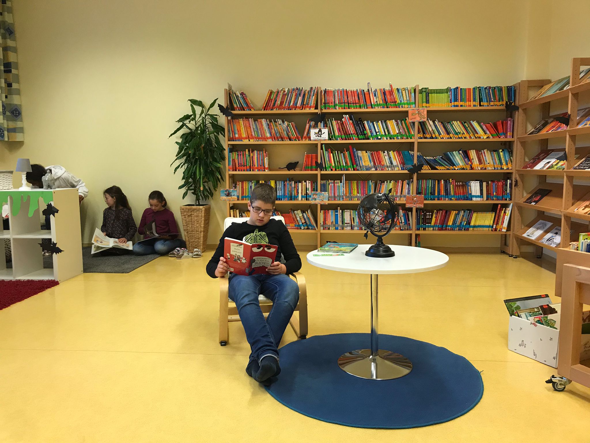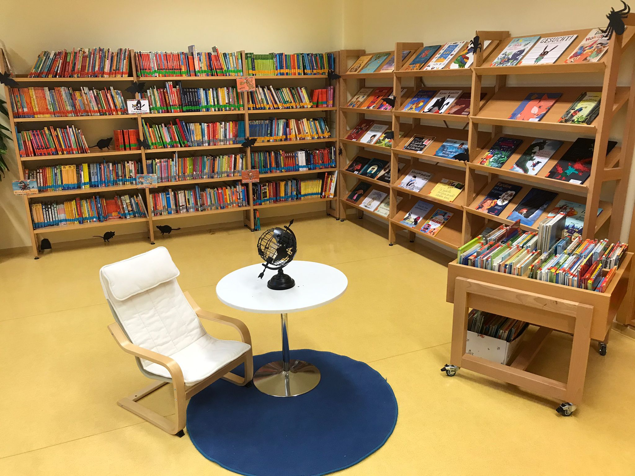 Unsere Bibliothek steht bereits in den Startlöchern und wird hier schon von der ersten Klasse genutzt