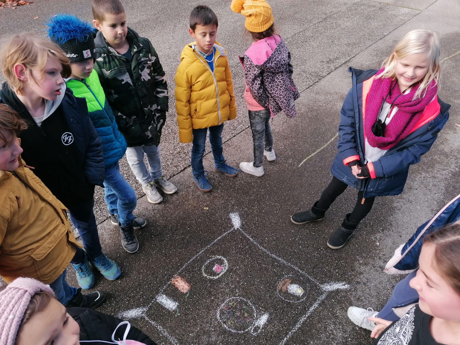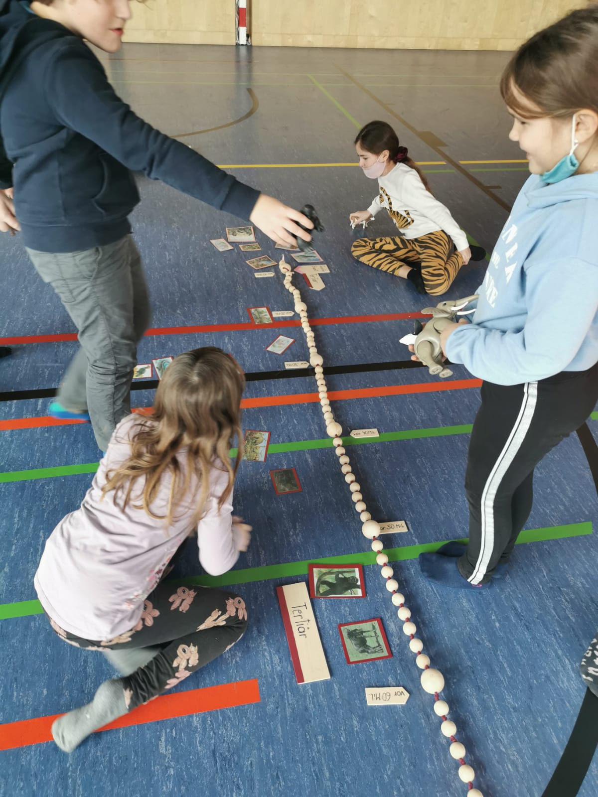 Die Kinder der Giraffenklasse erkundeten das Hunderterfeld mit dem ganzen Körper. Dabei sind lustige Spiele möglich und alle haben Freude daran.
