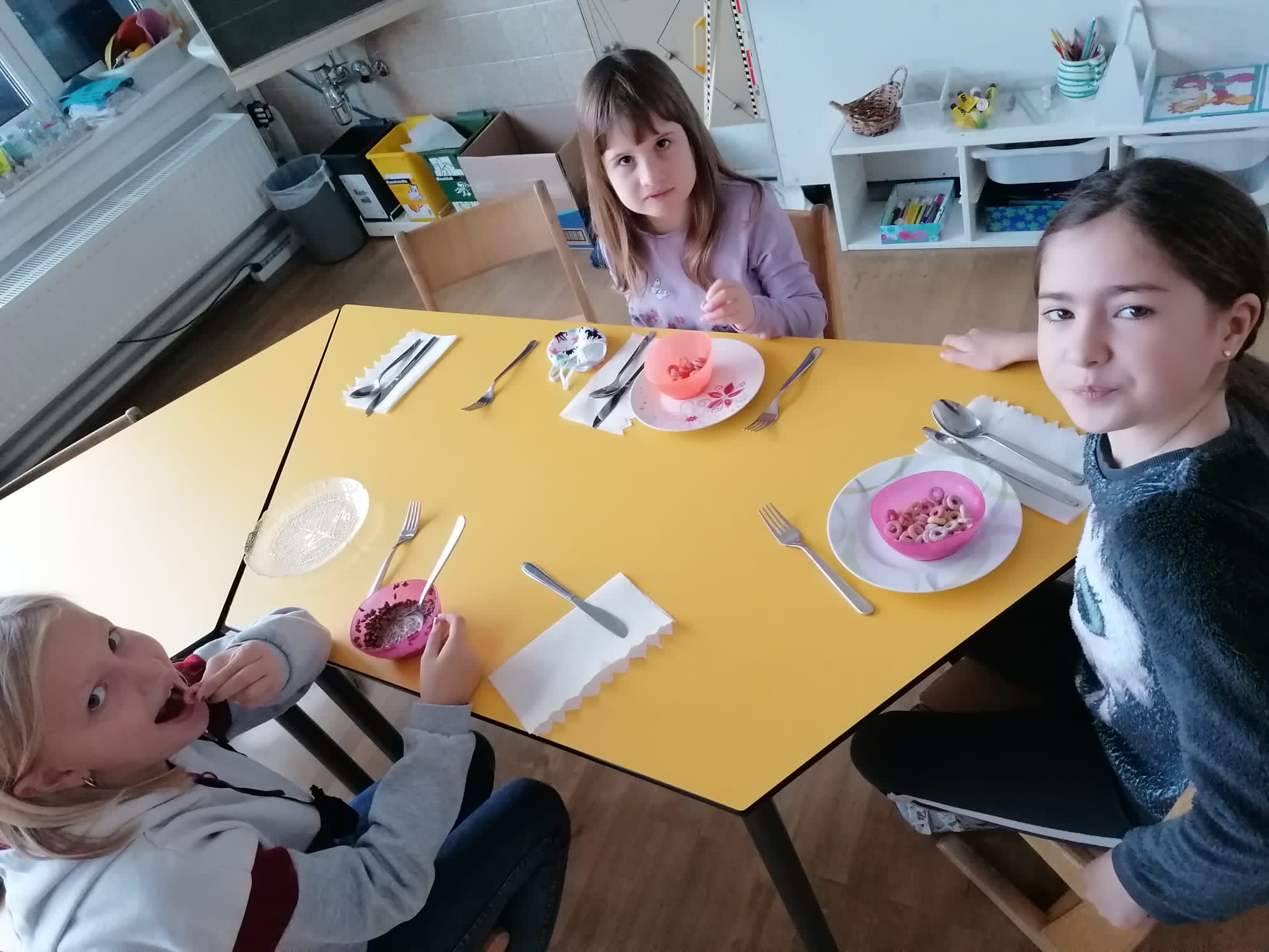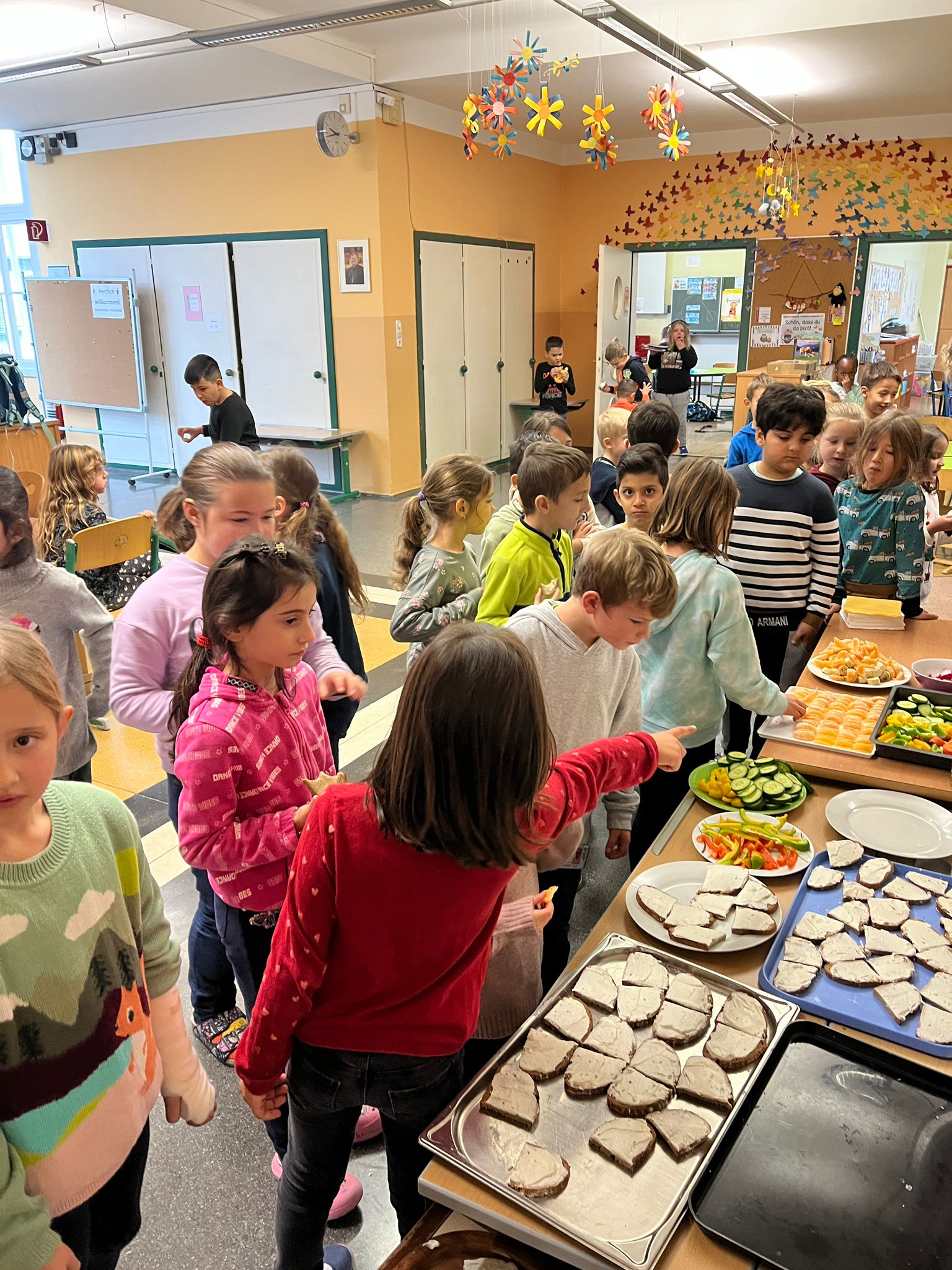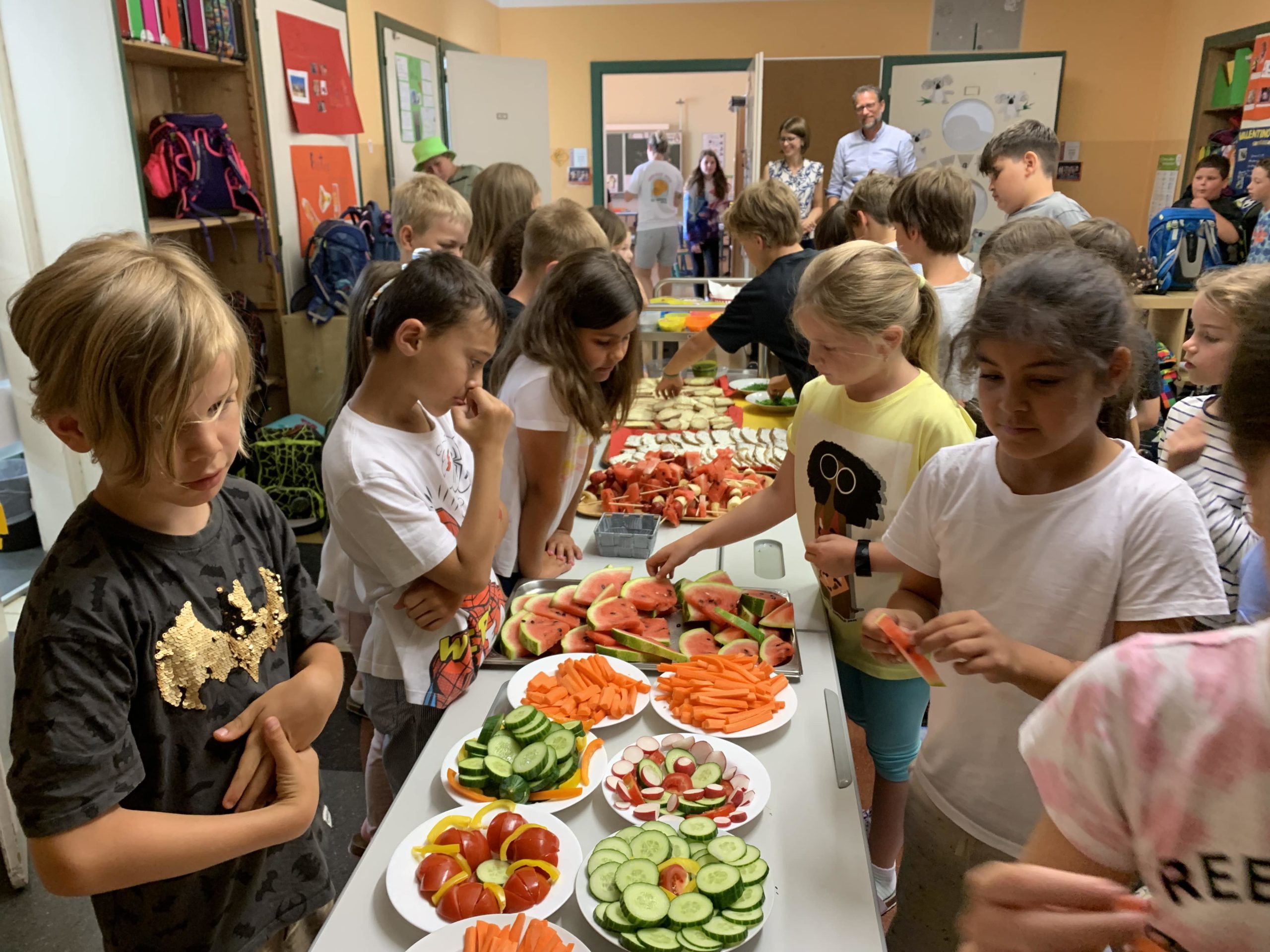 Diese gesunde Jause schmeckte den Kindern besonders, denn alle Kinder der Dino-, Eulen- und Giraffenklasse halfen mit.
