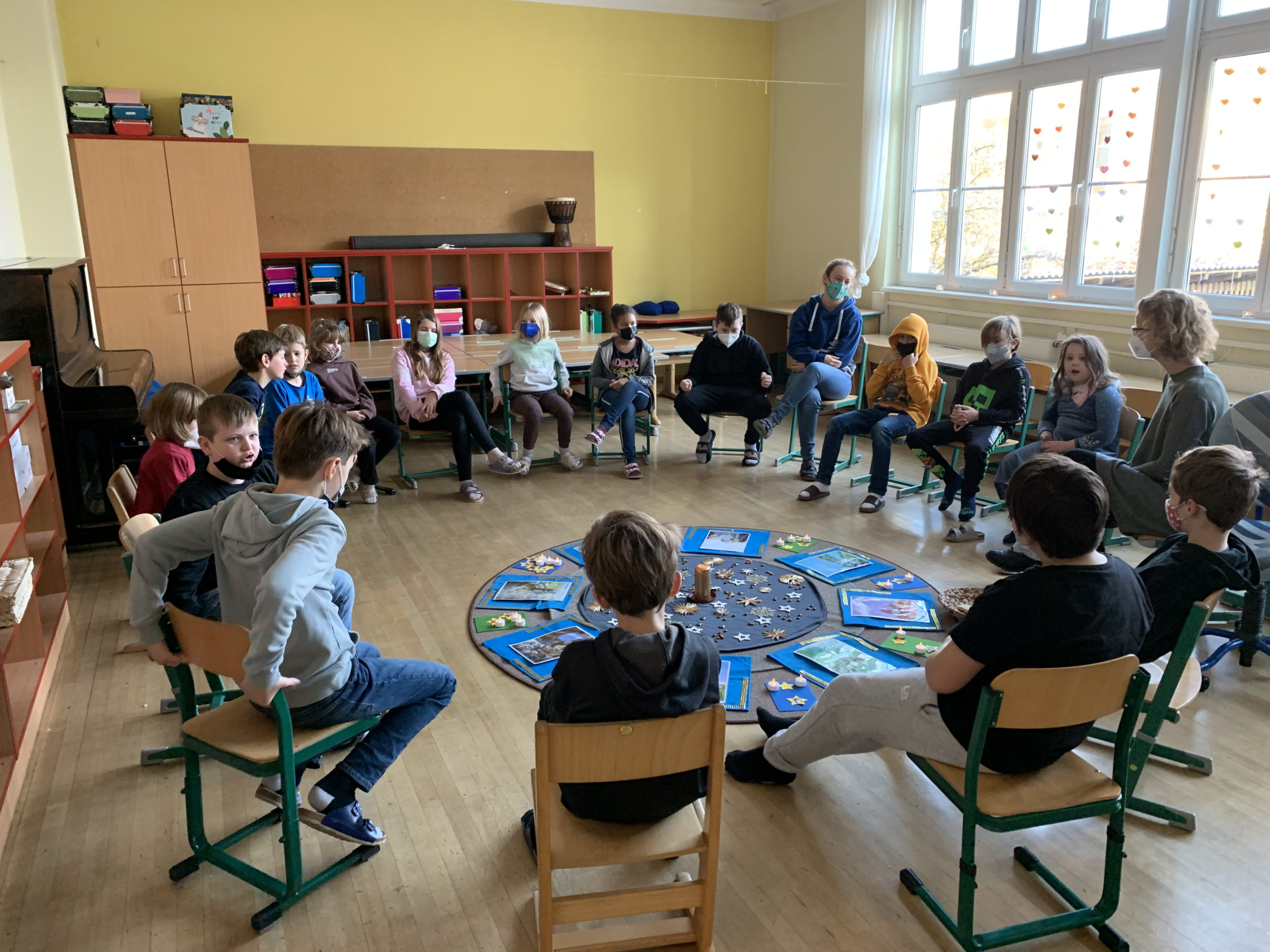 Mit Hilfe von den verschiedensten Legematerialien wird die Josefsgeschichte den Kindern erzählt. Unglaublich, wie aufmerksam alle gebannt den Worten der Lehrerin folgen. Es sind magische, schöne Momente; vor allem, wenn sich die Kinder darauf einlassen und ihre Gedanken und Gefühle zu dieser Geschichte mit uns teilen. Voller Spannung wird bei der besonderen Josefsgeschichte aufmerksam zugehört.…