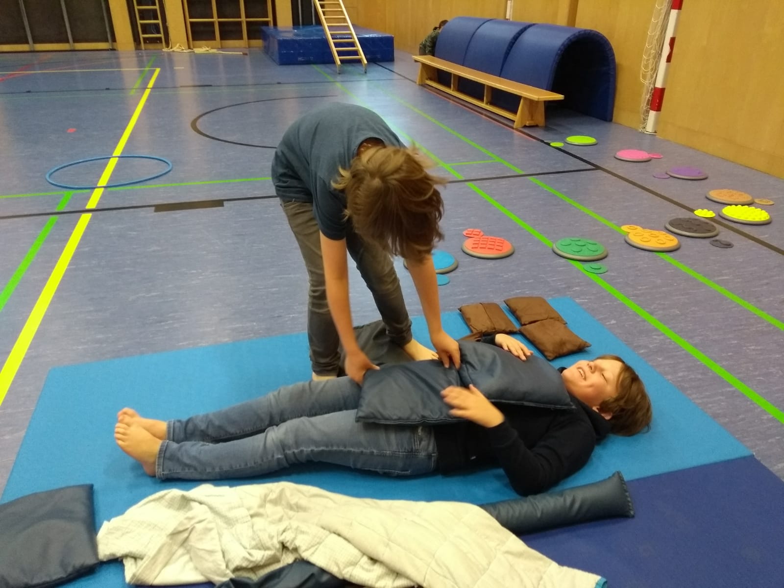 Im Rahmen des Mathematikunterrichts machten wir Partnerübungen zur “Orientierung im Raum”. Dabei ist sehr viel Vertrauen zwischen den Kindern nötig, sich aufeinander einzulassen. Die Raben meisterten alle Übungen mit Bravour! Thema Sprung, Beweglichkeit, Koordination. Den Körper spielerisch mit einfachen Übungen erproben und trainieren.