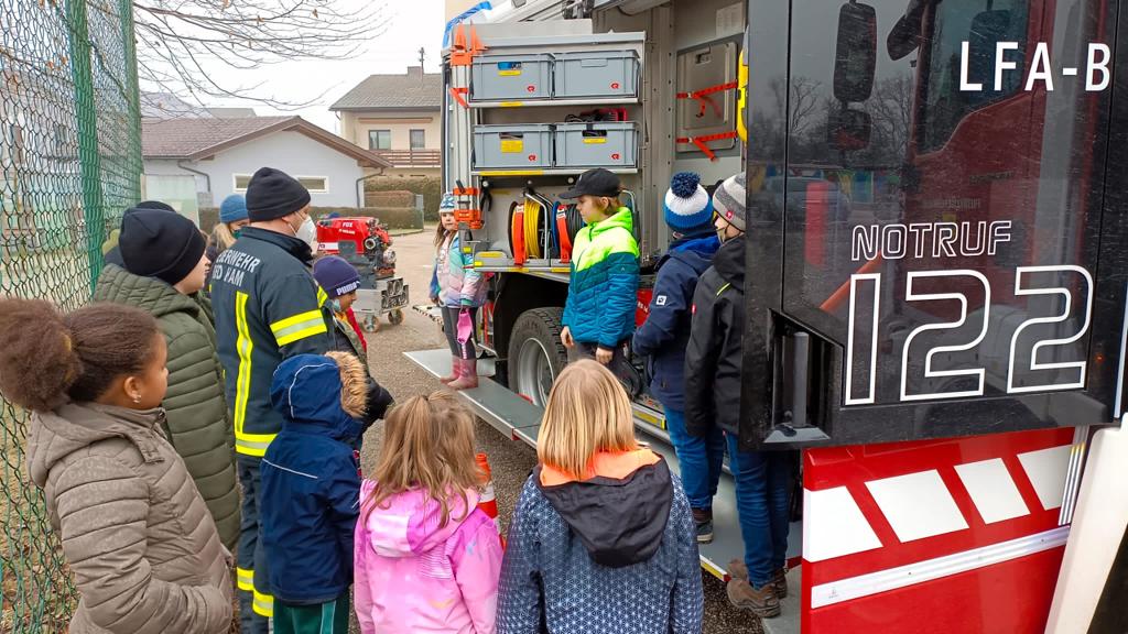 Lukas, aus der JAMI Pinguin Klasse, hat für sein Referat keine Mühen gescheut und hat extra die FF Redlham mit Herrn Thalhammer anrücken lassen. Die Kinder und auch die Pädagoginnen waren total begeistert. Danke Lukas für dein Engagement!