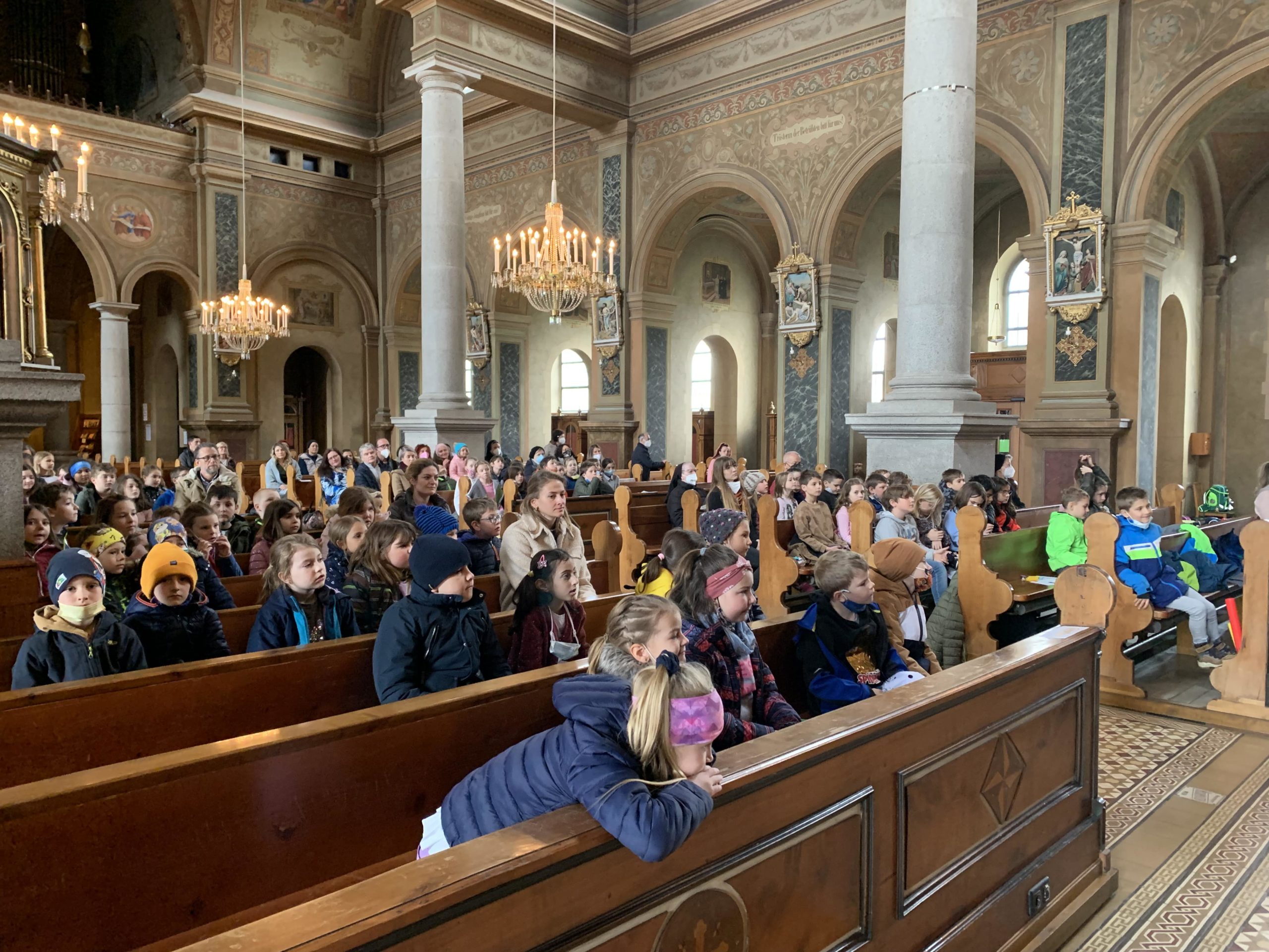 Die 26 Erstkommunionkinder stellten sich am 5. Fastensonntag in der Kirche vor. Sie bereiten sich schon sehr intensiv auf das Fest vor – Vorfreude ist schon spürbar!