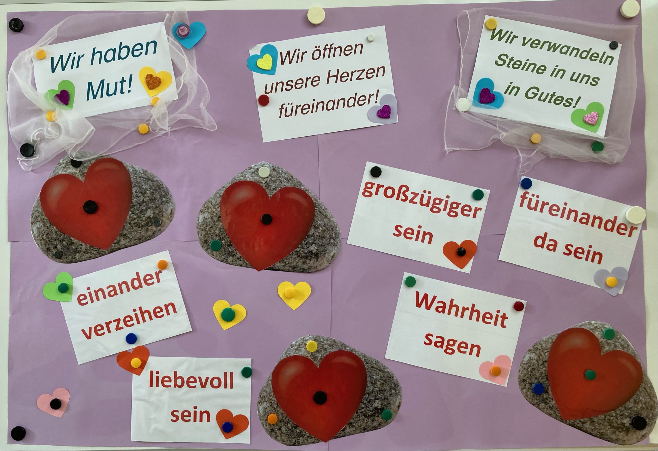 Wir tragen alle ein großes Herz in uns, welches wir gerne auch anderen weiterschenken wollen. Dies wurde uns in dieser Religionsstunde wieder einmal so richtig bewusst gemacht.