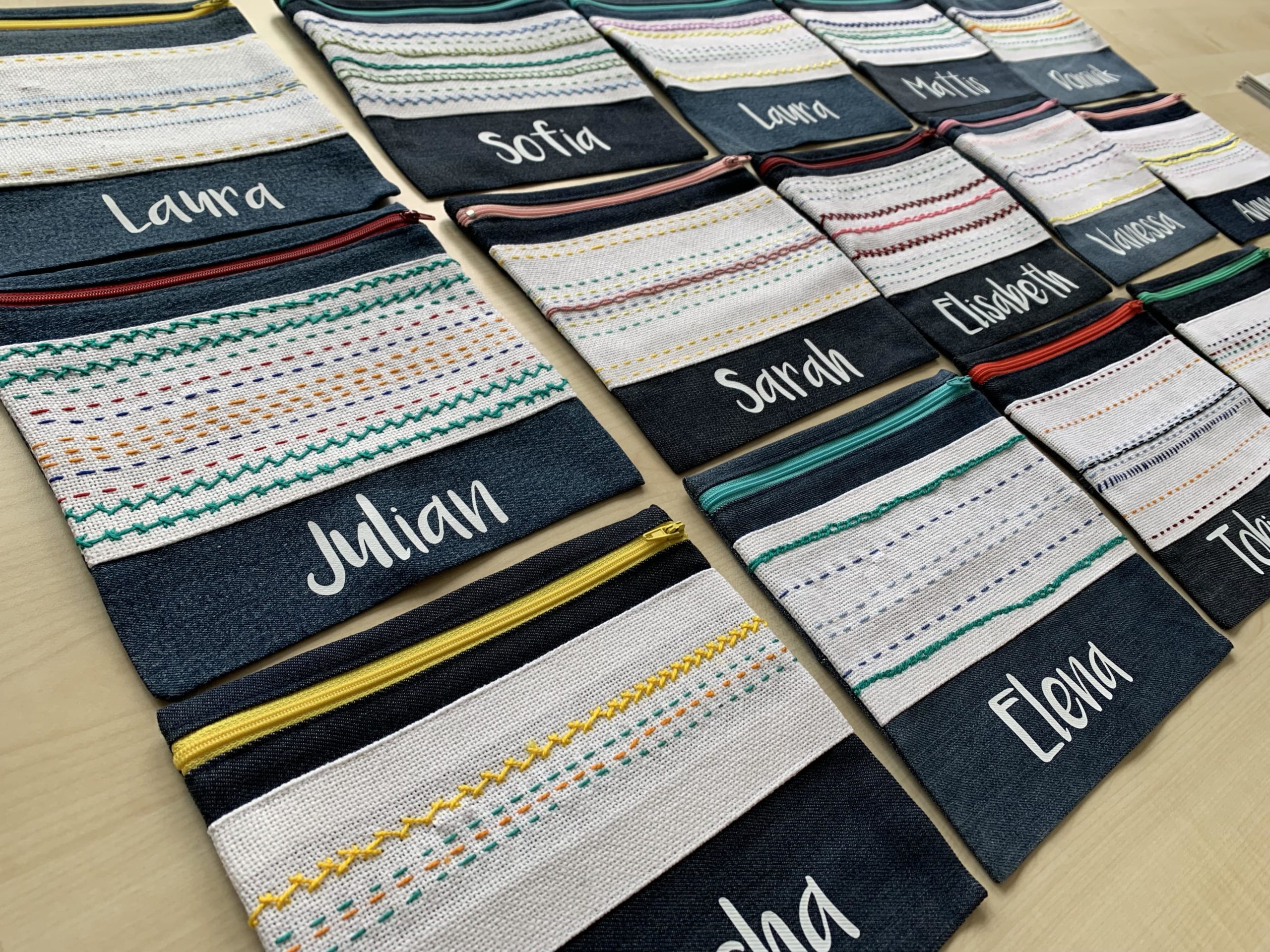 Im Werkunterricht stickten die Seepferdchen fleißig an ihren neuen Täschchen für Utensilien. Dabei wurde sich an vorgegebene Muster gehalten oder auch frei gestickt.