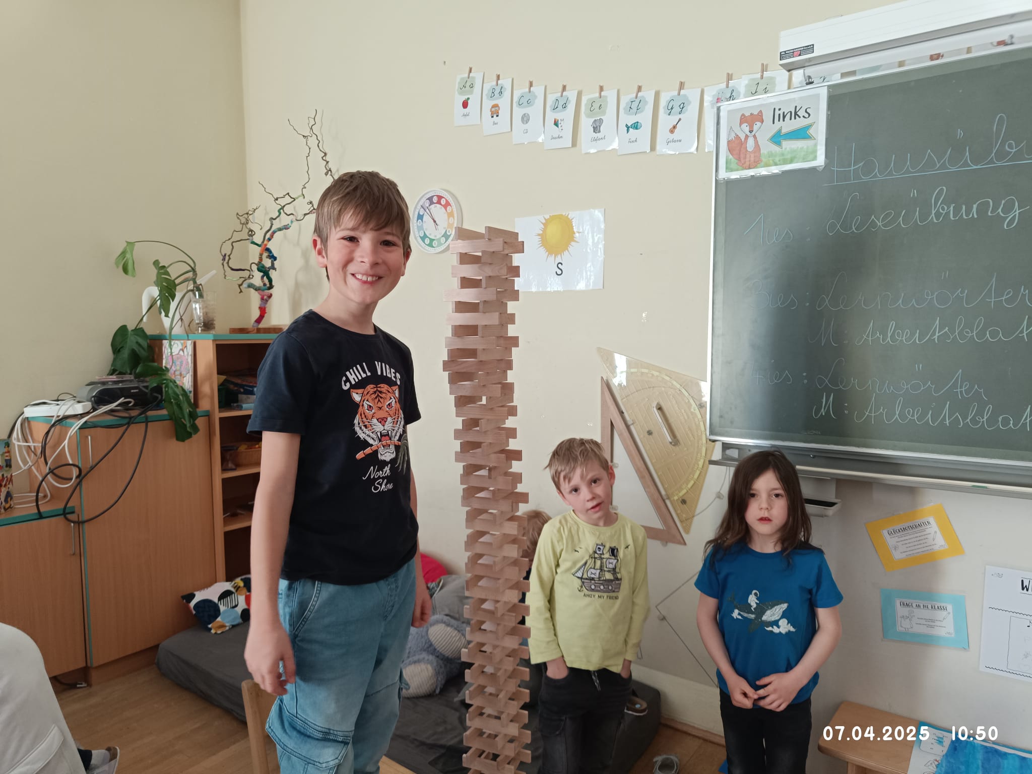 Ein Turm kann nur entstehen, wenn alle zusammenhalten. Jeder aus der Murmeltierklasse ist dabei wichtig.