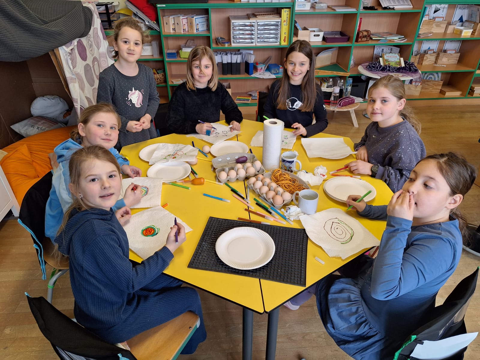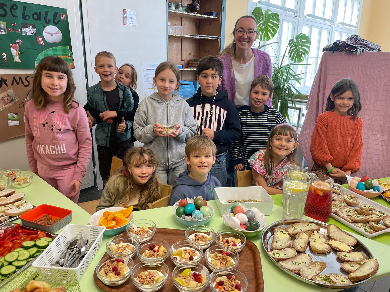Die Koalas haben dieses Mal die gesunde Jause ganz alleine organisiert: Gemeinsam wurde eine Einkaufsliste erstellt, alle Lebensmittel eingekauft, Eier gefärbt und alles vorbereitet. Neben einem riesigen Lerneffekt hatten die Kinder ganz viel Spaß an der Sache!