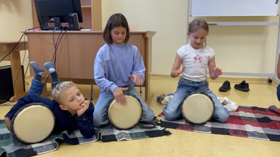 Angela Ruep die “Kofferfrau” hat den Kindern das Trommeln näher gebracht und zieht mit ihrer liebenswerten, offenen und vor allem humorvollen Art alle in den Bann.