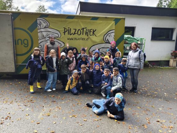 Die Kinder durften die Pilzzucht bei Klaus und Tina Schnötzinger-Vorwahlner besuchen. Dabei haben sie vieles über die Pilzsorten (Austern Seitlinge, Shiitake, Igelstachelbart) erfahren und sie sogar verkosten.