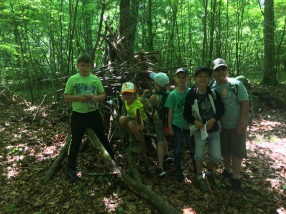 Die Kinder erforschten mit der Lupe kleine Tiere im Wald und bauten Häuser für Tiere.