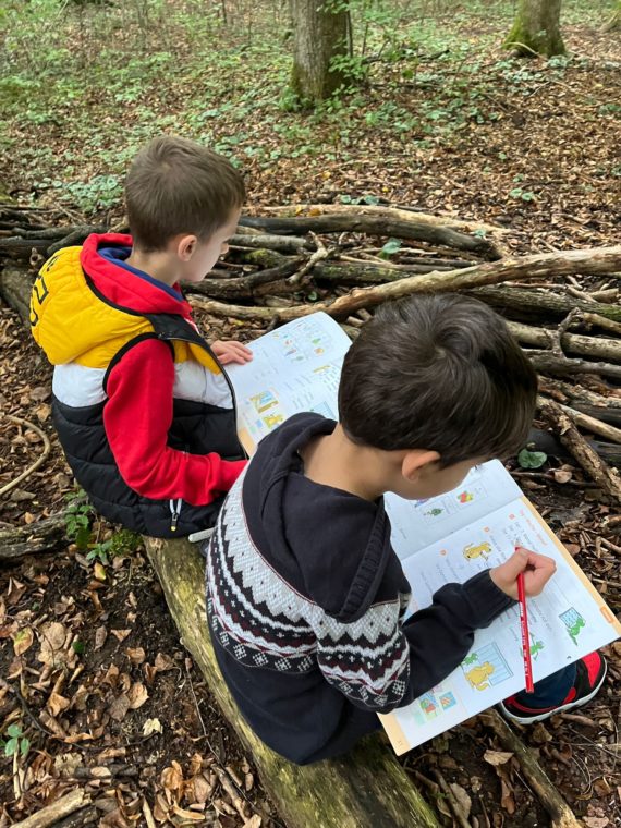 Die Kinder lernten heute im Wald zum Thema Jahreszeiten/ Kalender.