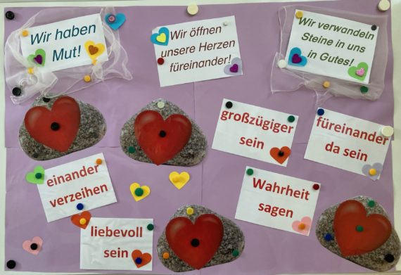 und in unserer Schulgemeinschaft füreinander da zu sein, war uns nicht nur in der Fastenzeit ein Anliegen, sondern ist uns an jedem einzelnen Tag wichtig! Daran erinnert uns auch das neue Bild in unserer Schule!