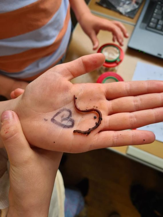 Die Giraffen durften echte Komposterde untersuchen und erfuhren viel über die wichtige Arbeit der Würmer.