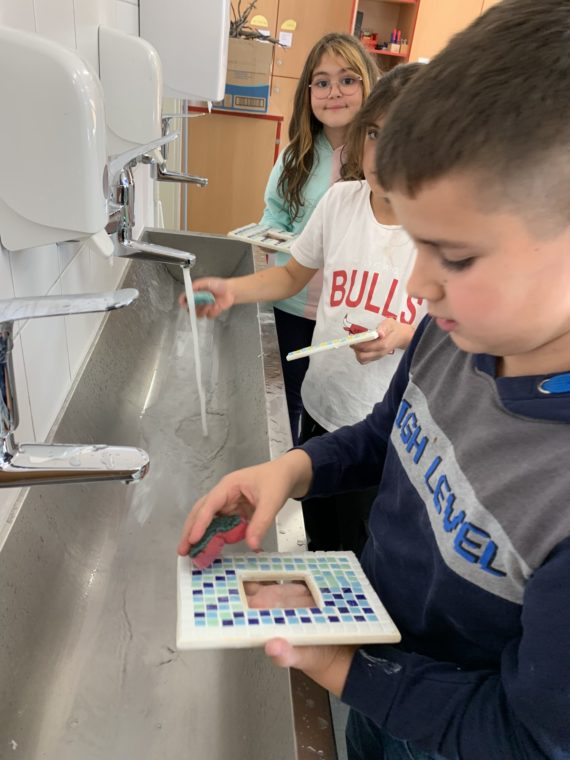 Im Werkunterricht dürfen die Kinder einen Bilderrahmen mit einem eigenen Mosaik herstellen.