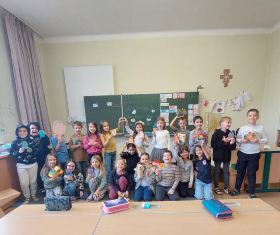 Im Religionsunterricht beschäftigten sich die Kinder mit den Strophen des Sonnengesangs des Hl. Franziskus. Dabei gab es zahlreiche und verschiedene Anregungen je nach Jahrgangsstufen der Kinder um sich mit den einzelnen Teilen davon zu beschäftigen. Bruder Feuer Schwester Wasser Mutter Erde